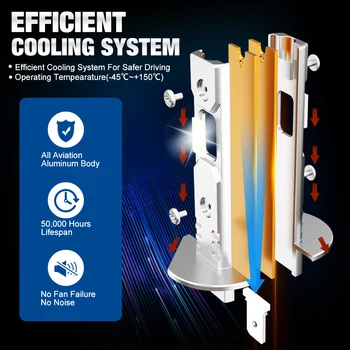 El faro está disponible en 6000K blanco para una visibilidad nítida y clara durante la conducción nocturna, o en 3000K amarillo para condiciones de niebla, lluvia o nieve, mejorando significativamente la seguridad. Con una salida de luz de 30000LM, este LED te proporciona una excelente distribución de la luz para garantizar una mejor visibilidad en cualquier tipo de terreno y condiciones climáticas.