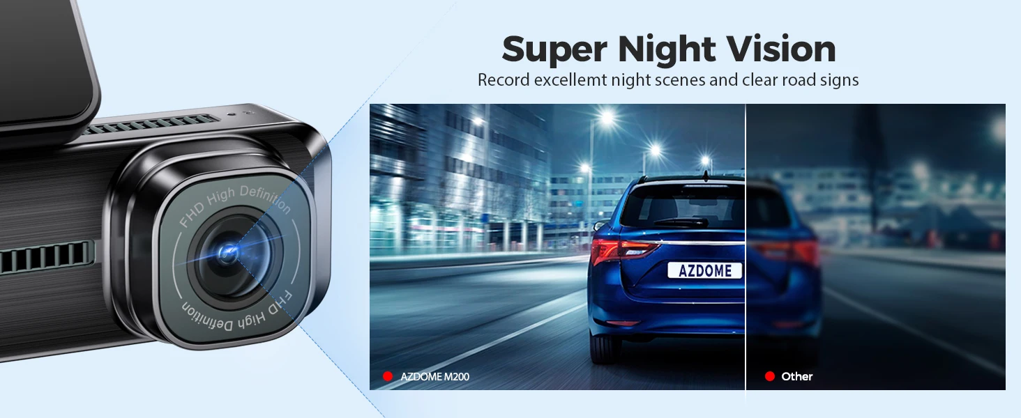 - La cámara frontal de tablero de 1080P ofrece al usuario una visualización de alta definición.La cámara del tablero AZDOME M200 podría capturar los detalles de la carretera.