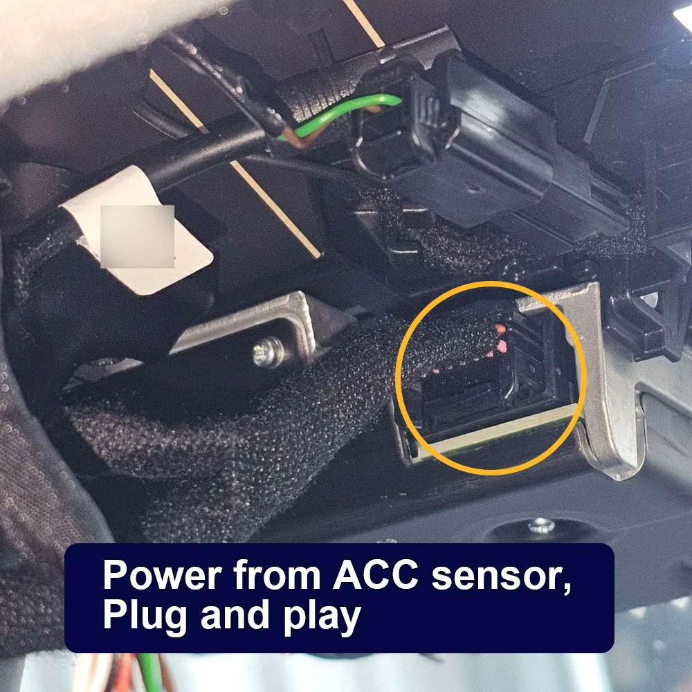 No daña la instalación, varias formas de tomar energía.Toma energía del sensor de control de crucero adaptativo (ACC).El cable plug and play se envía de forma predeterminada. Si necesita reemplazar el cable de la caja de fusibles o el cable OBD, contáctenos antes de enviar.